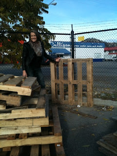 My daughter and I went on the hunt for a pallet...Treehouse furniture had a stack of them out back. We went in and asked nicely if we could have one..."help yourself!" was the response! Perfect...FREE!